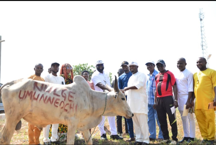 In his customary manner of showing empathy and exhibiting philanthropy, the Senior Special Assistant to the Governor of Abia State on Due Process, Dr. Oluebube A. Chukwu, has presented his yuletide gifts comprising cash and cow to workers of Umunneochi Local governments council.