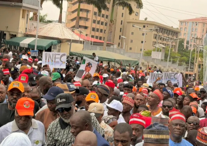 Prominent Opposition Leaders lead Nigerians to protest against INEC in Abuja